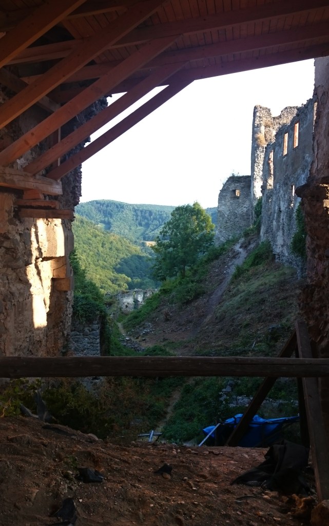 Mivel étkezni megálltunk a szlovák oldalon, jócskán benne jártunk a délutánban, mire arra a pontra értünk, ahol leraktuk az autókat és gyalog folytattuk az utat. Körülbelül egy órás séta után értünk a vár aljába, ahol megkerestük a közeli forrást, megtöltöttük palackjainkat, majd felmásztunk a romokhoz.