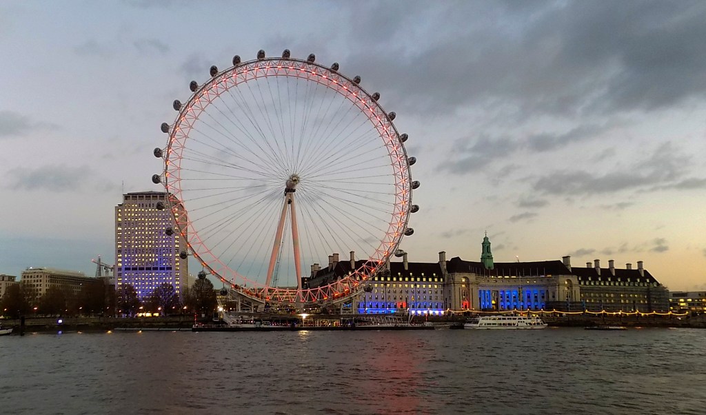 A folyóparton sétáltunk tovább, hamar egy vonalba kerültünk a London Eye-jal.