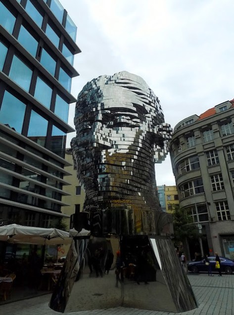 A múzeum után a forgó Kafka szobrot vettük célba. Láttam róla videót youtube-on, és muszáj volt élőben is megnézni. Sajnos az egyik elem nem forgott a többivel, ráférne egy javítás, de alapvetően az élményen nem sokat rontott. Imádom, hogy Prága tele van weirdebbnél weirdebb szobrokkal.