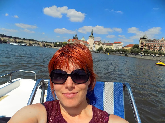 Ralinak sajnos megint indulnia kellett dolgozni. Mi célba vettünk a vízibiciklis standot a közeli Slovanský szigeten. Némi várakozás és 230 jó cseh korona átadása után már tekertünk is a folyón. Jó időnk volt, sütött a nap, alattunk a folyó, előttünk a Károly híd, már csak egy sör hiányzott a kezünkből. Néha igencsak koncentrálni kellett a kormányzásra, mivel tele volt a folyó más vízibiciklizőkkel, és mindenki ment, amerre látott. Ja és én voltam a kapitány. 😀 Hihetetlenül gyorsan eltelt az egy óra, párszor megkerültük a Kampa szigetet, kicsit csordogáltunk, aztán már mehettünk is leadni a hajót.