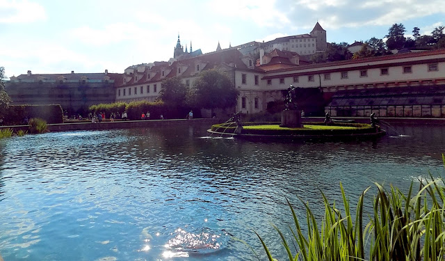 >A nagy tekeréstől megéheztünk, a késői ebédet a Rali által ajánlott Husa étteremben ettük. Desszertnek csokis sajttortát kértem, még csili is volt rajta. :O Ebéd közben azon tanakodtunk, merre menjünk tovább, de eléggé leredukálódtak az opcióink, mikor kiderült, hogy a Strahov könyvtár kb. akkor zárt. A Wallenstein kertet választottuk, az mindig szép.
