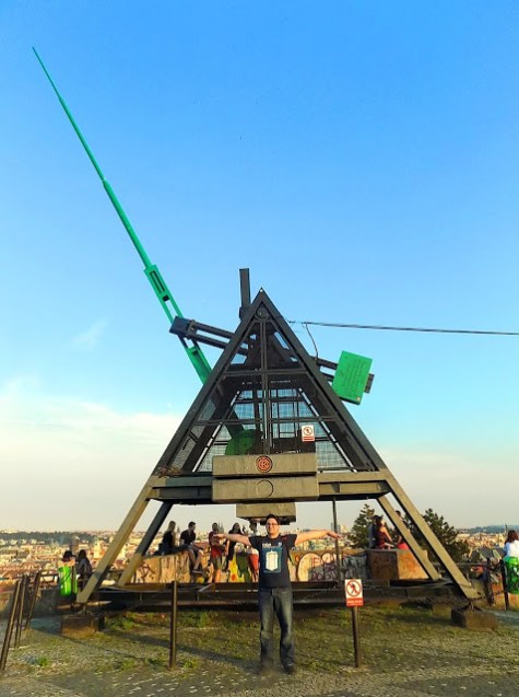 Mivel kürtősre nem éheztünk, visszamentünk az Újezdre. Útközben vettünk sört, majd lanovkával mentünk vissza a Petřín hegyre. Már sötét volt, mire felértünk. Kisétáltunk a parkba, és kiültünk az egyik kedvenc városnézős spotomra, és csak néztük az éjszakai Prágát. Mellettünk csehekből és nemzetközi diákokból álló társaság partizott, zenét hallgattak meg gitároztak, inkább illett a hangulathoz, mint zavart. Hát hjaj, az éjszakai kilátás bámulása régen is mindig keserédes élmény volt: öt éve is tudtuk, hogy leszk idő, amikor nem lesz a mindennapjaink része a várost csodálni, és most is tudtuk, hogy másnap már megyünk haza, ennyi volt.
