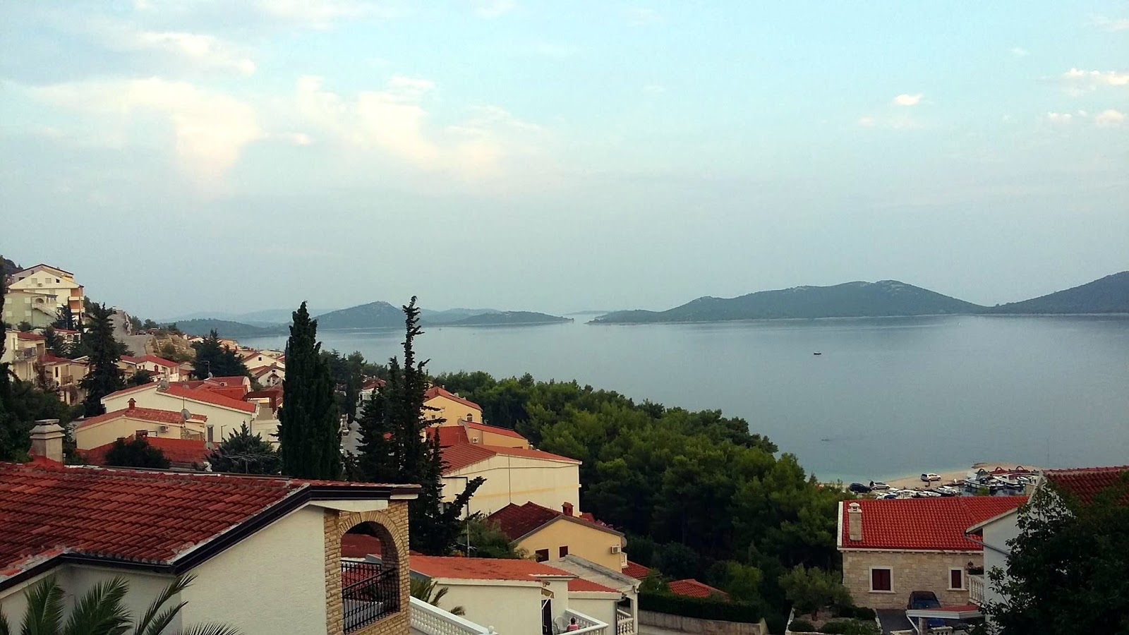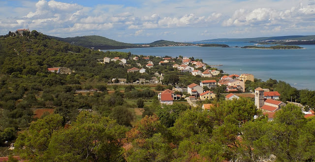 | Pasman sziget, Tkon falu, balra fent egy bencés kolostor, jobbra a távolba Zadar |