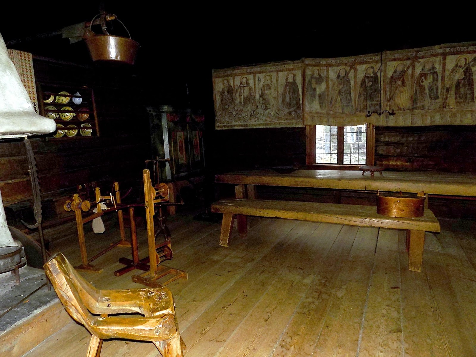 A skanzen egy része amolyan 19. századi kisvárosként van berendezve kovácsműhellyel, szatócsbolttal, üvegfújóval. Érdekes az is, de az igazi móka az igazán régi házaknál kezdődik. Mint ez.