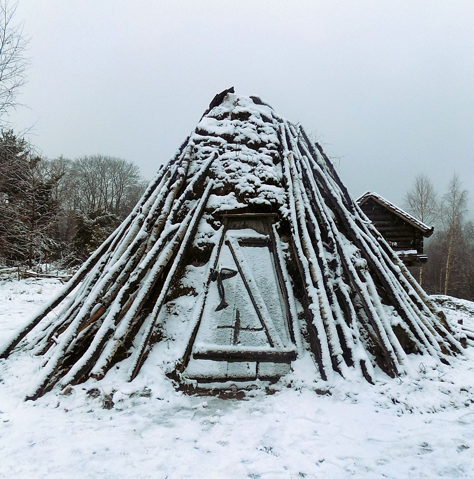 | Kacsalábon forgó számi tárolóépület |