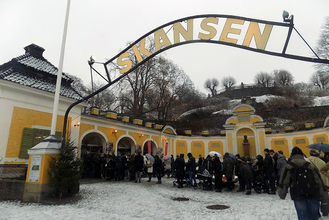 skanzen és a Vasa múzeum található. A skanzen volt a cél, a Vasa múzeummal úgy voltunk, hogy fox már látta, és ha van időnk, bemegyünk, ha nem, akkor én megnézem máskor egyedül. Természetesen nem maradt rá időnk, mert a skanzen HATALMAS. Négy órát töltöttünk ott, és jó, ha a felét láttuk. :O Sajnos a nyitvatartása télen rövidke: hétköznap 10-15 h között, hétvégén 10-16 h között van nyitva. Nyáron este 6, 8-ig látogatható, de van, amikor este 10-ig. A belépő ára is változó: nyáron 180 SEK a felnőtt, ősszel és tavasszal általában 120, télen 100, de ha karácsonyi vásár van, akkor 150 SEK. Amikor mi mentünk, karácsonyi vásáros hétvége volt, szóval 150 SEK/főt kellett perkálnunk.