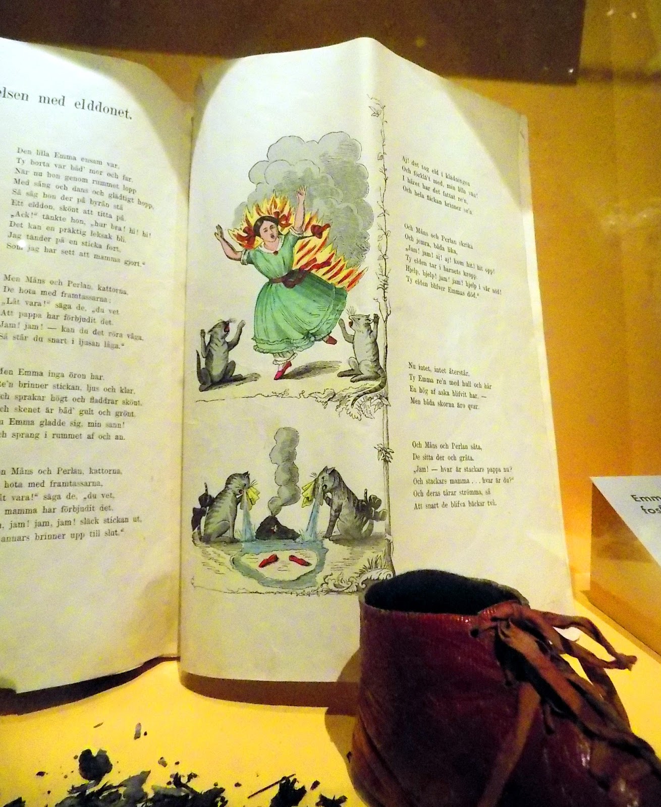 Itt találkoztam a mesekönyvvel, ahol a felgyulladó kislány megsiratják a macskák. Megláttam, és hangosan felröhögtem – remélem nem gondoltak szívtelennek.