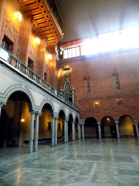 A városháza csak vezetéssel látogatható. Angol nyelven 10-től délután 3-ig óránként indulnak séták, én a 2 órásira fizettem be. A 45 perces túra 70 SEK-be került, egészen baráti ár. Cserébe egy rahedli pénzt otthagytam a shopban, de ez már az én hülyeségem. 😀