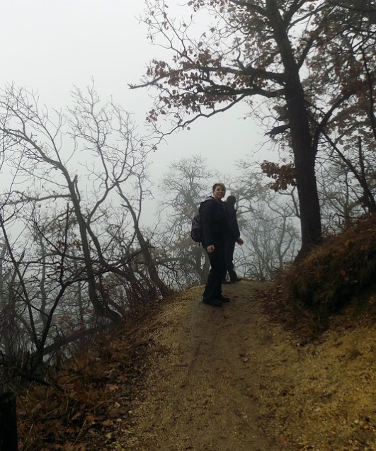 A János-hegy oldalában caplattunk a Tündér-szikla irányába. Miután túljutottunk a jeges részeken, jött a dagonyázós sár. A Tündér-sziklához ráadásul földes lépcsősoron kellett lemászni, folyamatosan féltem, hogy elcsúszok.