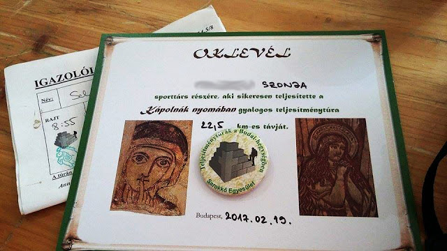 Felvonszoltuk magunkat, elértük a Szent Anna-kápolnát, felfedeztük a full ingyenes és tök igényes WC-t a Normafán, majd megtettük ugyanazt a szakaszt el a János-hegyig és le a Szépjuhásznéig. Megkaptuk az okleveleket és kitűzőket, ettünk zsíros kenyeret, ittunk teát.
