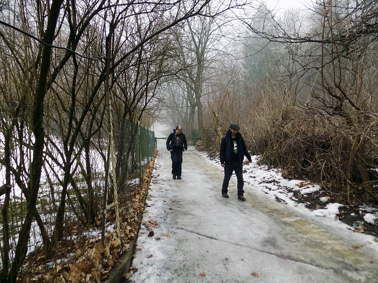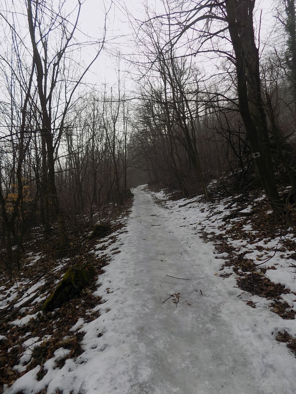 Ahol tudtunk, az út melletti leveleken és sárban gyalogoltunk, de volt, ahol az is csúszott. Féltem, hogy a terepviszonyok miatt annyi időt veszítünk, amitől veszélybe kerül a szintidőn belüli teljesítés. Meg egyékbként se tudom, mennyire korrekt elvárni, hogy ennyire jeges utakon ugyanolyan gyorsan beérjen az ember, mint normális erdei terepen.