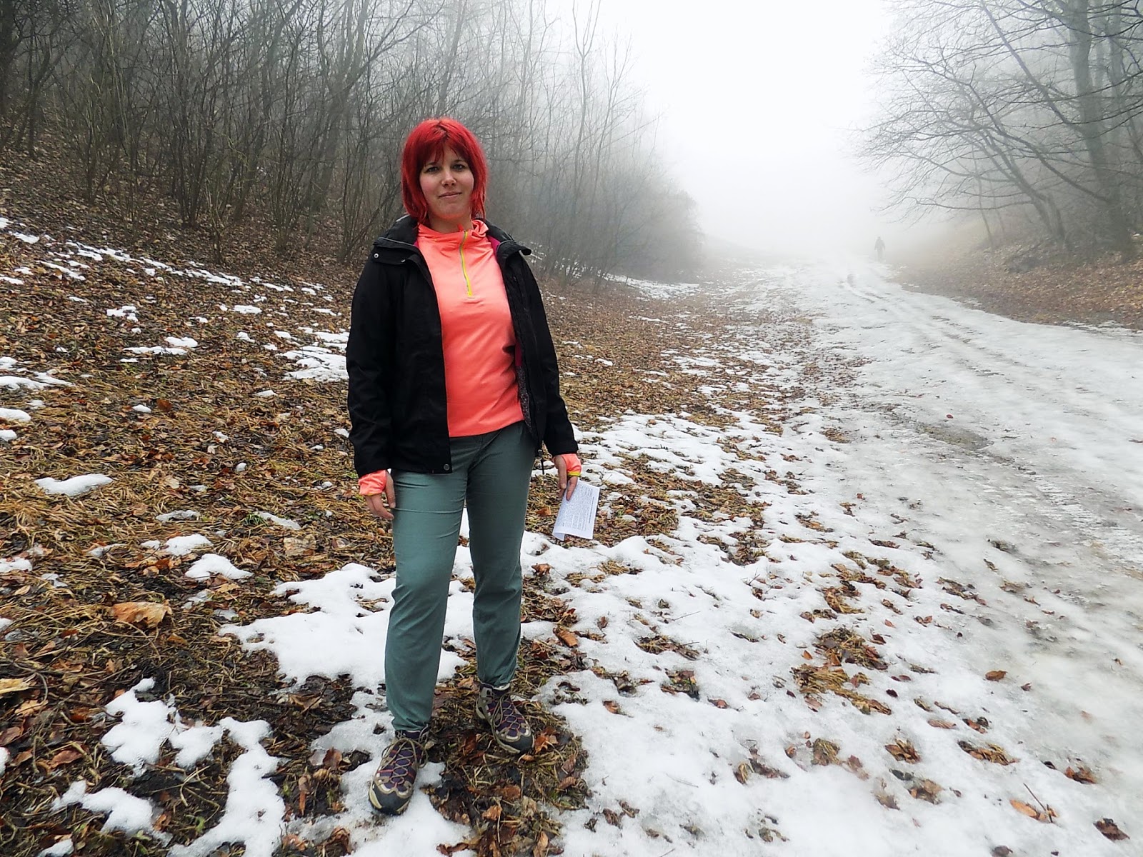 Akkora köd volt, hogy bár a szikla mellett mentünk el, alig láttunk belőle valamit. Amúgy sem álltunk meg nézelődni, próbáltunk minél gyorsabban haladni. Az első ellenőrzőpont nem volt messze, ott vált ketté a két táv. A többség a rövidebb kört választotta, mi mentünk a hosszabbon. Egyrészt fura volt, hogy visszajutottunk a civilizációba, másrészt hamarosan eltévedtünk. Van egy szakasz az itinerben, ami totál átbaszós. Azt írják, hogy a Király Béla utcán kanyarodj jobbra az Y elágazódásnál, csak azzal nem számolnak, hogy két ilyen elágazás is van, és ők a másodikra gondolnak. Azért is átbaszós, mert amúgy tök részletesen le van írva, mikor merre kell menni, de ott pont nem részletezik túl az útvonalat. Két másik sráccal együtt elindultunk a rossz irányba, aztán amikor teljes jégpáncél fedte az utat, elgondolkodtunk, hogy biztos erre kell-e menni. Nyilván nem. Köszi google maps és gps a segítséget!