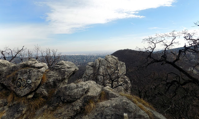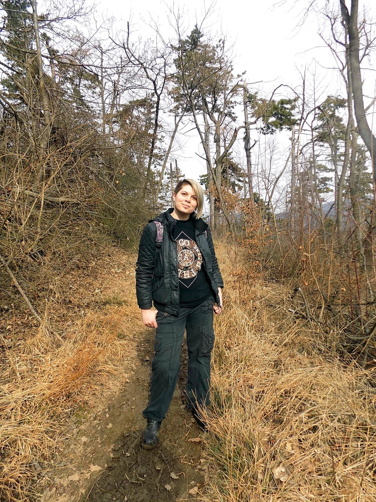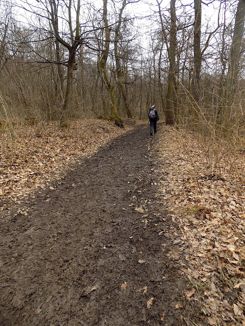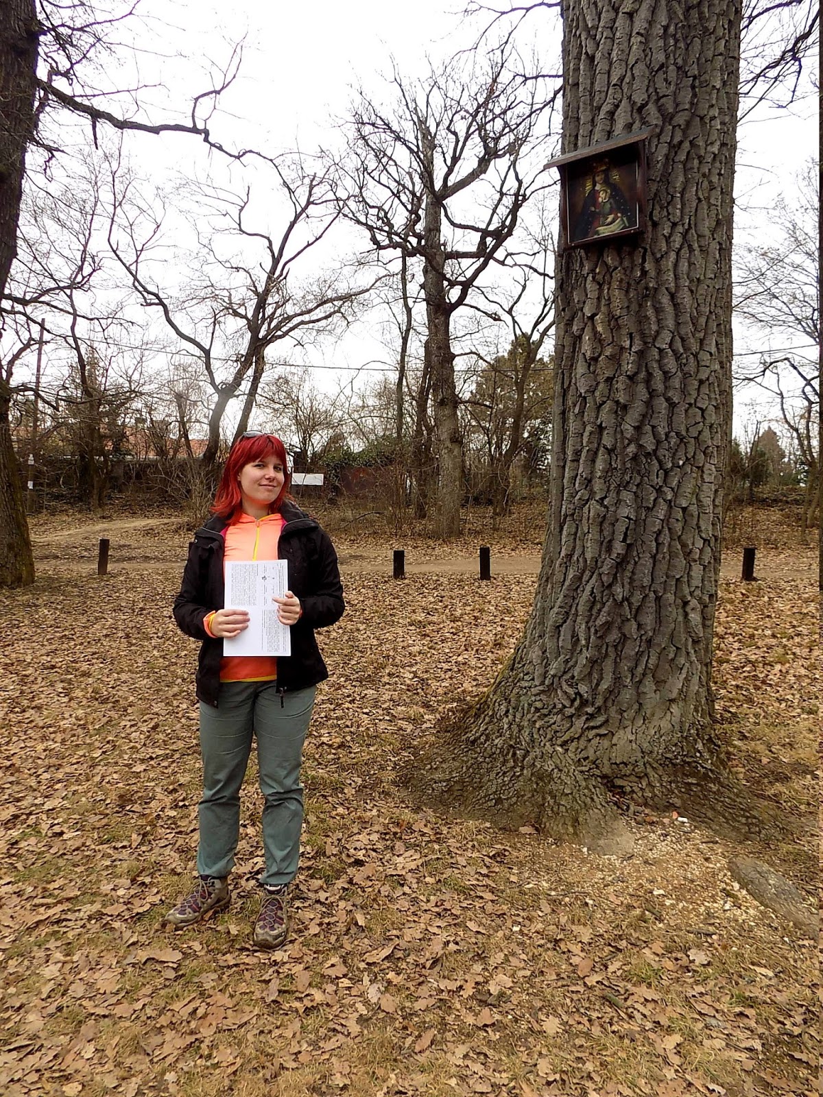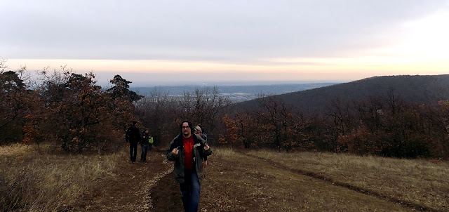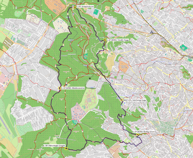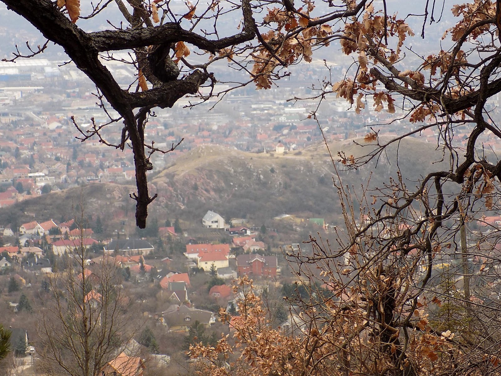 Makkosmáriánál a kód felírása után megebédeltük a szendvicseinket és pihentünk kicsit. A kezdeti lendület kicsit elkopott. Nóra a sálammal kötözte be a térdét, hogy tartsa valami és könnyebben tudjon lépni vele. Már megtettük az út felét, és még mindig jól álltunk az idővel. A következő km-eket eszméletlen dagonyában tettük meg: sáros erdei út, természetesen emelkedve. Néhol elbizonytalanodtunk, a turistajelek nem mindenhol egyértelműek, de nem tévedtünk el. Aztán egyszer csak azon kaptuk magunkat, hogy alattunk van Budaörs, és azon a dombon sétálunk, amit a buszból szoktunk látni, amikor utazunk vidékről Budapestre.