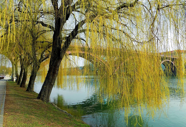 A Dráva partja nagyon nyugis, a víz tele van kacsákkal és hattyúkkal.