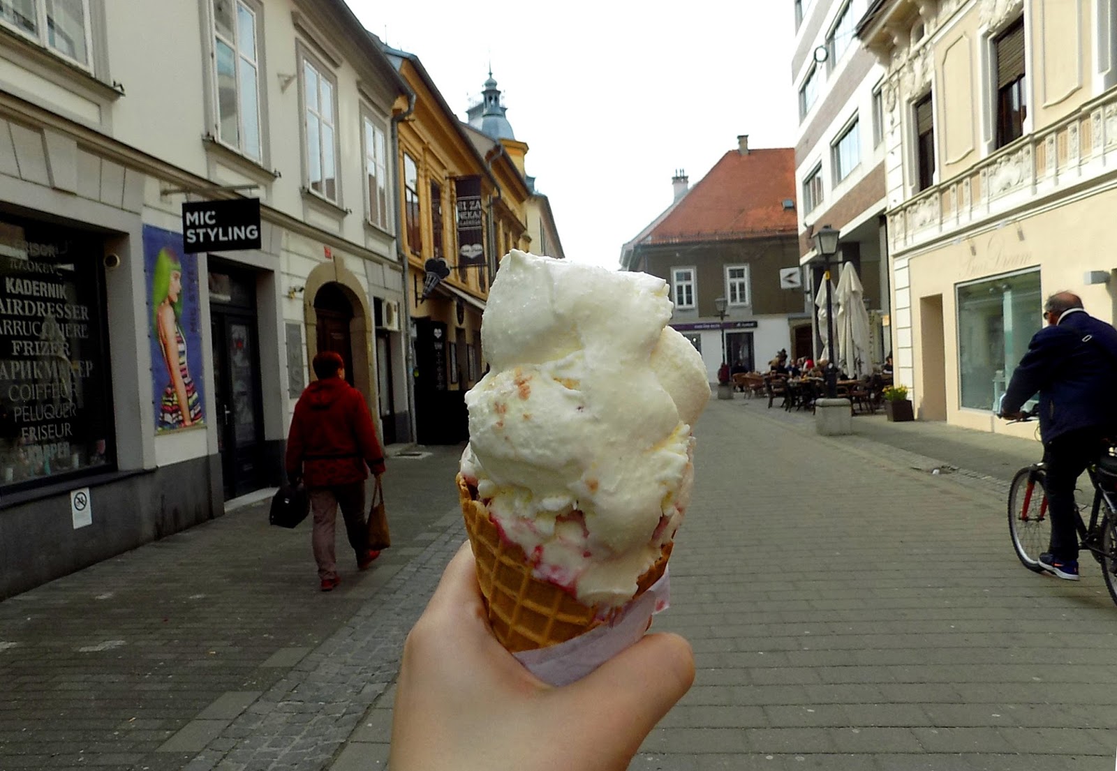 Nem kellett sokáig sétálnunk, hogy egy szimpatikus fagyizót találjunk. Elfelejtettük, hogy ez nem Magyarország, itt nem spórolnak a gombóccal, úgyhogy sikerült akkora adagot kapnunk, ami kiváltotta az ebédet.