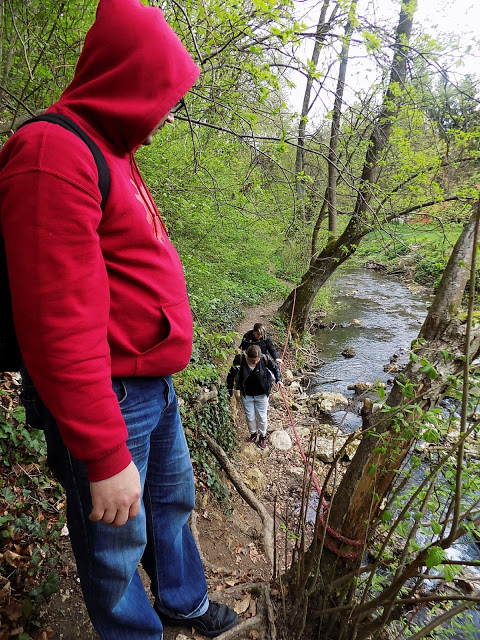 Mikor mindenki képesnek érezte magát a visszasétára, újra útnak indultunk. Az autóspihenőtől a kék kereszten haladtunk Bakonybél felé, végig a Gerence partján. Tavaly is erre sétáltunk Dave-vel, nem volt ismeretlen a terep.