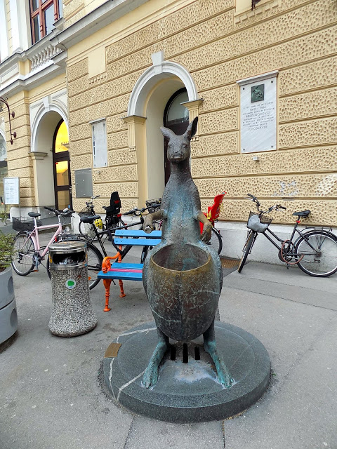 Megkerestük a várba vivő siklót. A bejárattól nem messze találtuk ezt a teljesen indokolatlan kengurus ivókutat.