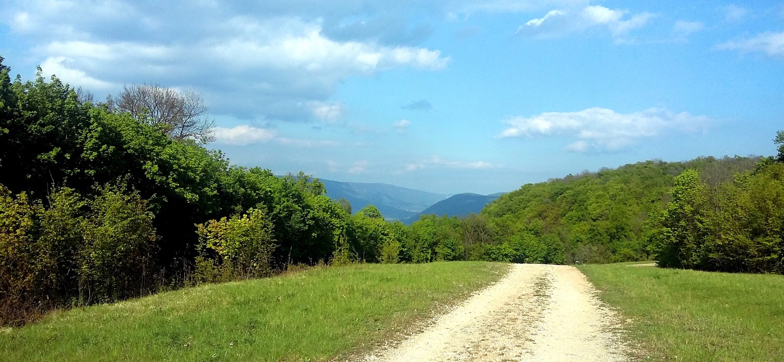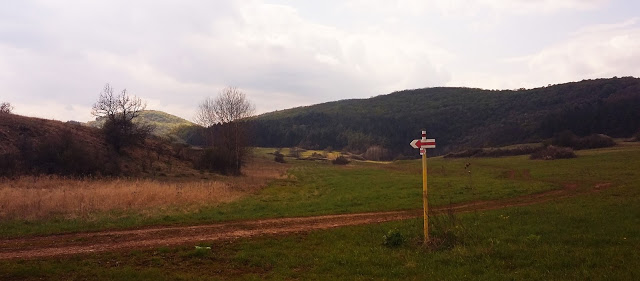Itt válaszúthoz értünk. Mikor az utat terveztük, úgy kalkuláltunk, hogy akár az is beleférhet, hogy nem a határ mentén maradunk, hanem kissé eltávolodva még megmászunk egy hegyet, és csak később térünk vissza a határ környékére. Ez sok plusz kilométert jelentett volna, és már így is késésben voltunk. Áttértünk hát a sárga jelzésre, ami meh, betonúton vezetett.
