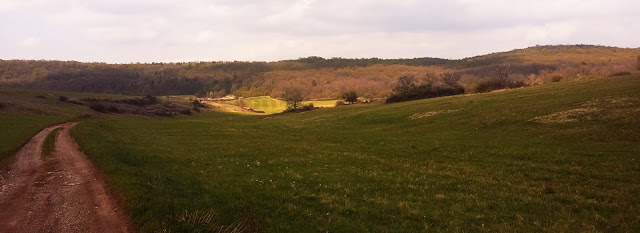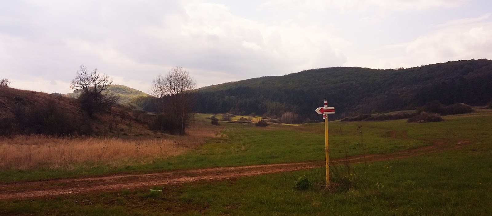 Bevetettük magunkat az erdőbe. Igen hamar dagonyában kötöttünk ki. Biztos vagyok benne, hogy ezen a szakaszon teheneket vagy hasonló patás állatokat terelgetnek, különben nem lett volna ennyire sáros minden. Plusz ismeretlen eredetű állatürüléket kerülgettünk folyamatosan, és amíg átértünk ezen a kb. 1 km-es szakaszon, hosszú állatszőrök tapadtak a ruhámra. Egészen kiábrándító volt ez a rész: az autóút párhuzamosan halad az erdei úttal, autókerekek és egyéb szétszórt hulladék szúrja a túrázó szemét. Kár érte. Egy mezőre értünk ki, onnan pedig rácsatlakozott a turistajelzés az autóútra. Wtf? Egészen a legközelebbi településig, Kecsőig a betonúton mentünk.
