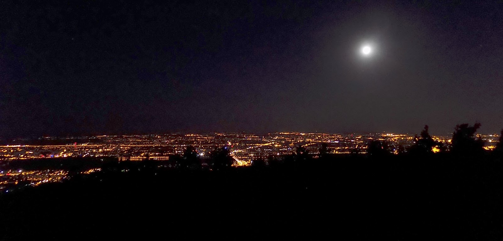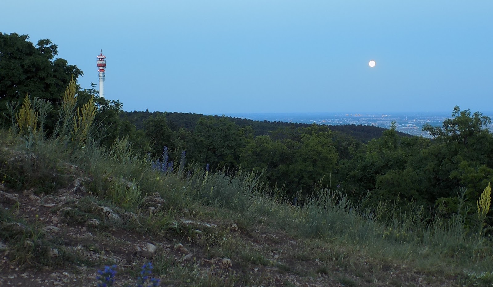 Sötétedett, fent volt a szinte teljes telihold. Egyik oldalról a hold és a Hármashatár-hegy ORFK tornya foglalták keretbe a panorámát. Látszott egész Budapest, még az Erzsébet téri óriáskerék és a MüPa is, a másik oldalról pedig kis települések fényei, erdős dombok és rétek tárultak elénk.