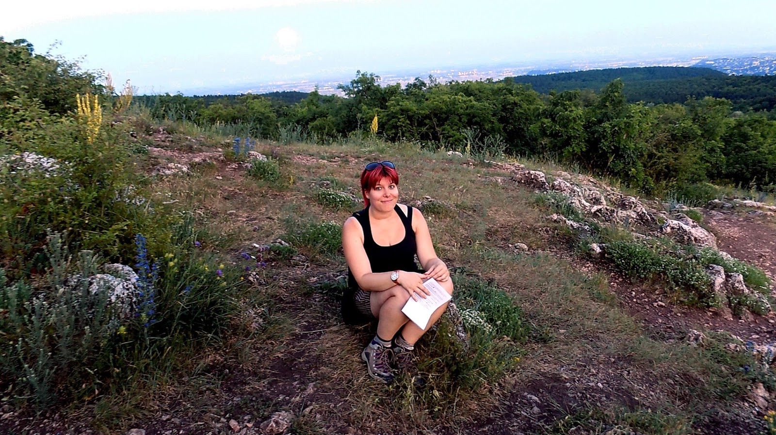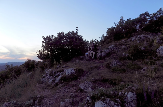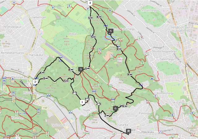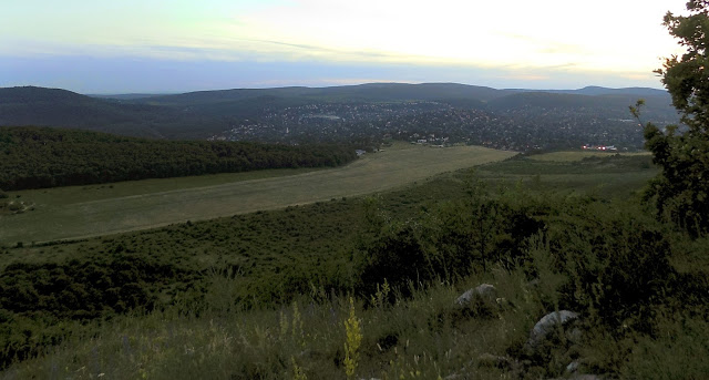 Megmásztuk a Nyéki-hegyet, és a túloldalán felírtuk a kövezkező kódot. Megkerültük a Vadaskerti-hegyet, itt ért minket a naplemente.