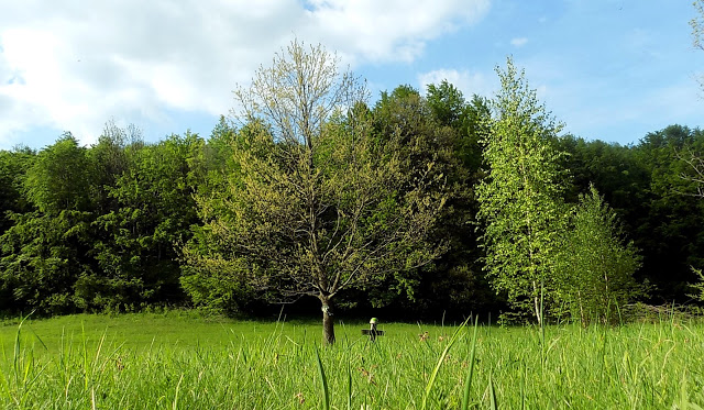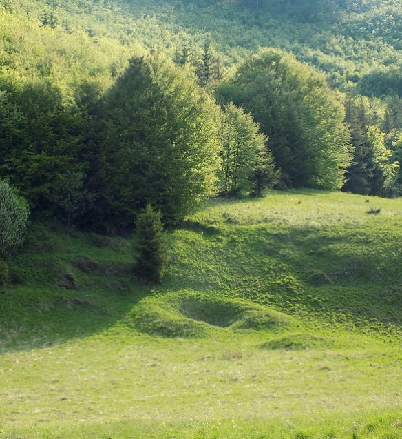 Megejtettük a napi meditációt. Jól esett fetrengen a fűben, gyakrabban kéne csinálnom. Ezután következett a nap legszebb része: igaz töbörös, világítóan zöld mezőségen keltünk át Jávorkút felé.