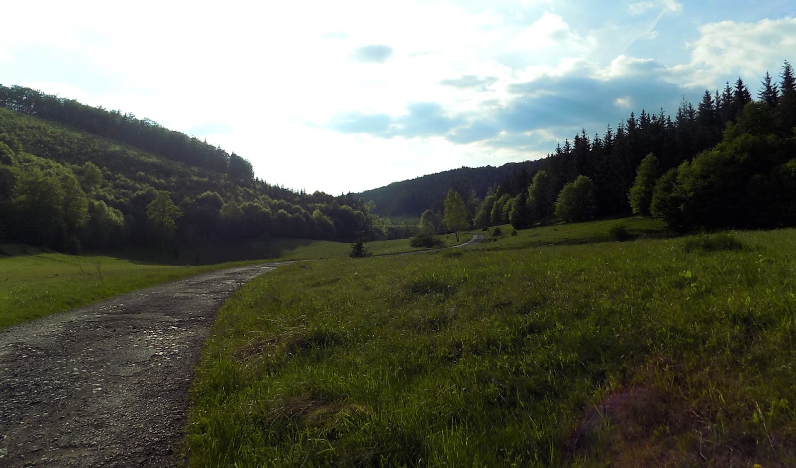 Megejtettük a napi meditációt. Jól esett fetrengen a fűben, gyakrabban kéne csinálnom. Ezután következett a nap legszebb része: igaz töbörös, világítóan zöld mezőségen keltünk át Jávorkút felé.