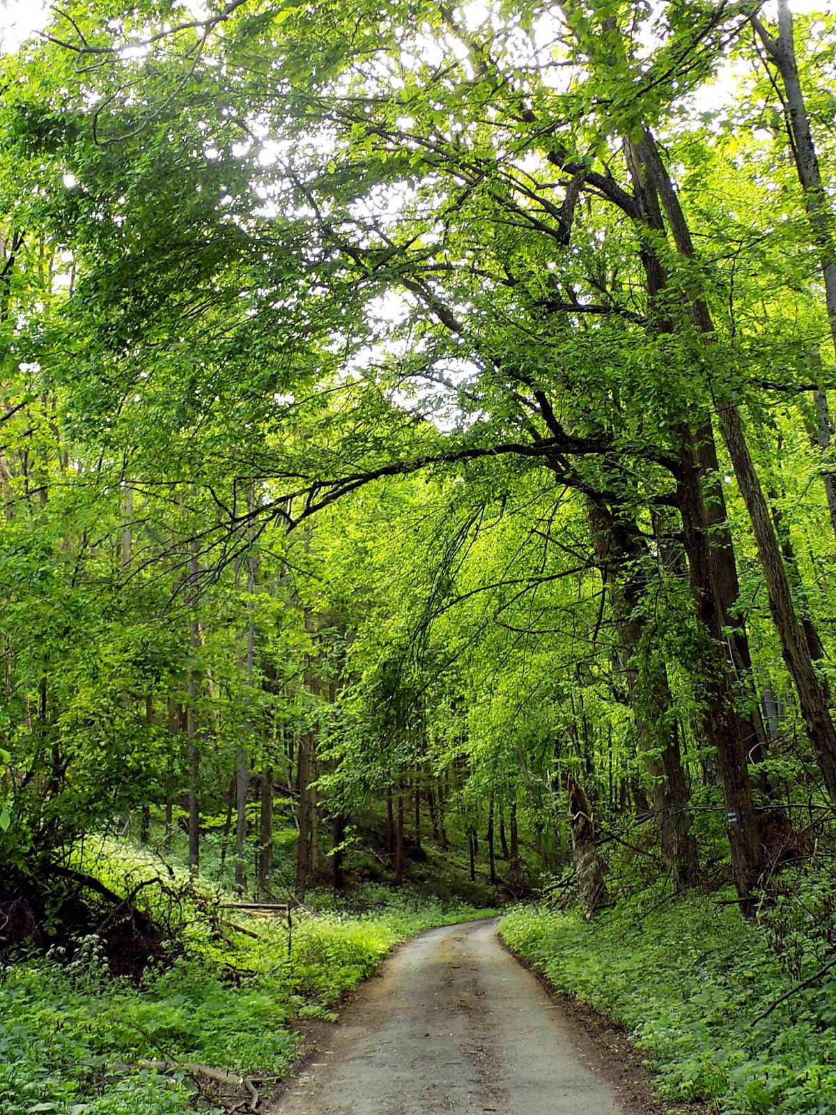 Két oldalról égi érő fák között sétáltunk, nyugalom volt és jó levegő. Idilli.