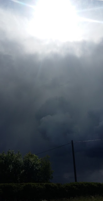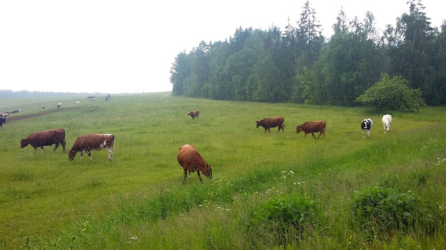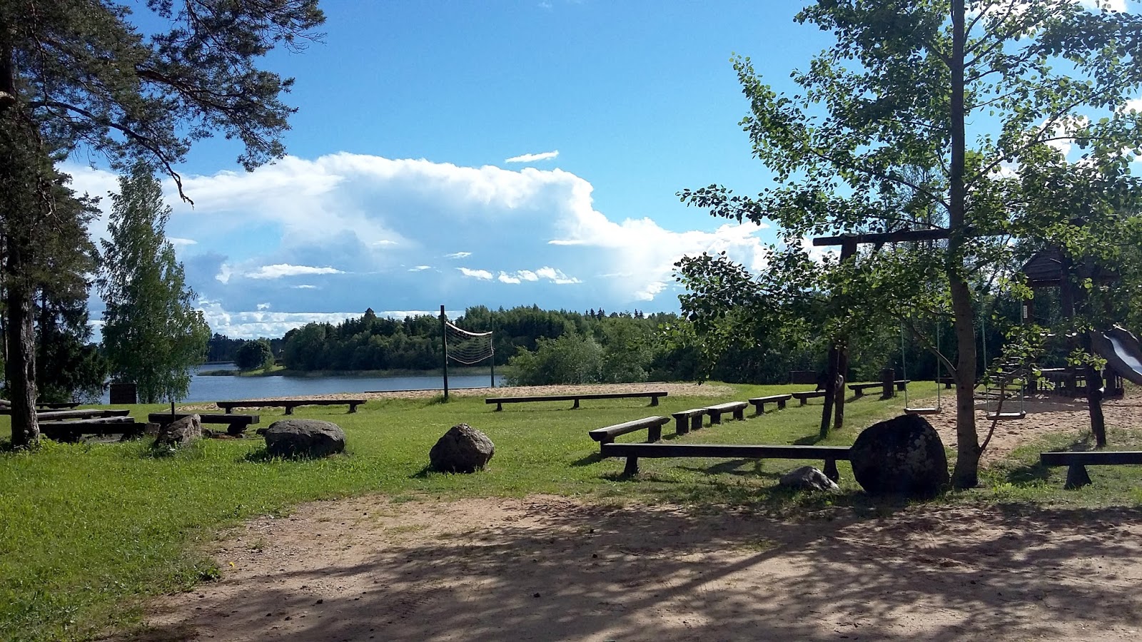 A városból kiérve bicikliúton haladtunk tovább. A távolban viharfelhők gyülekeztek, de távolinak tűntek. Aha. Észtországban ez nem így működik: a távoli felhők brutálgyorsan utol tudnak érni. Az Otepää-i elágazásnál kapott el minket az első zuhé. Hamar elállt a szakadó eső, a továbbiakban csak csöpögött, de a biztonság kedvéért bebugyoláltuk és vízhatlanná tettük a hátizsákokat.