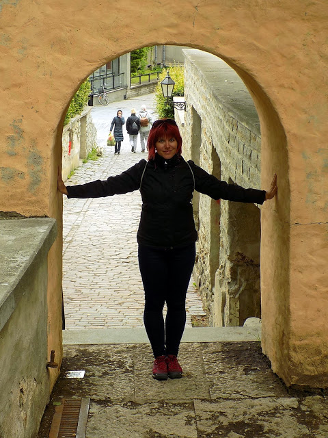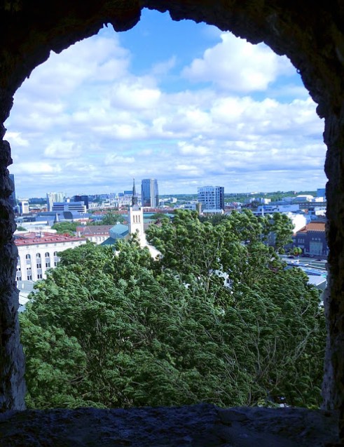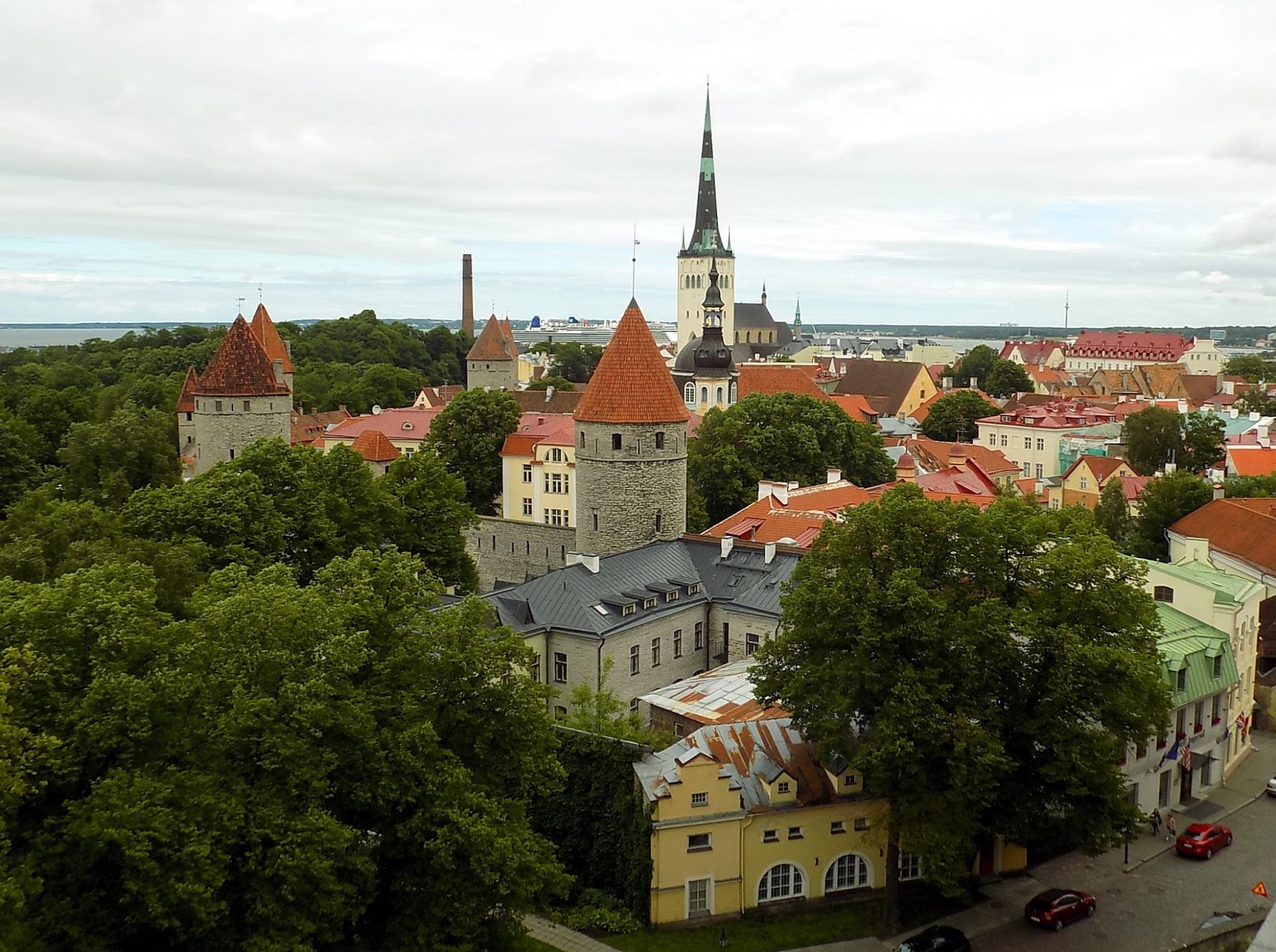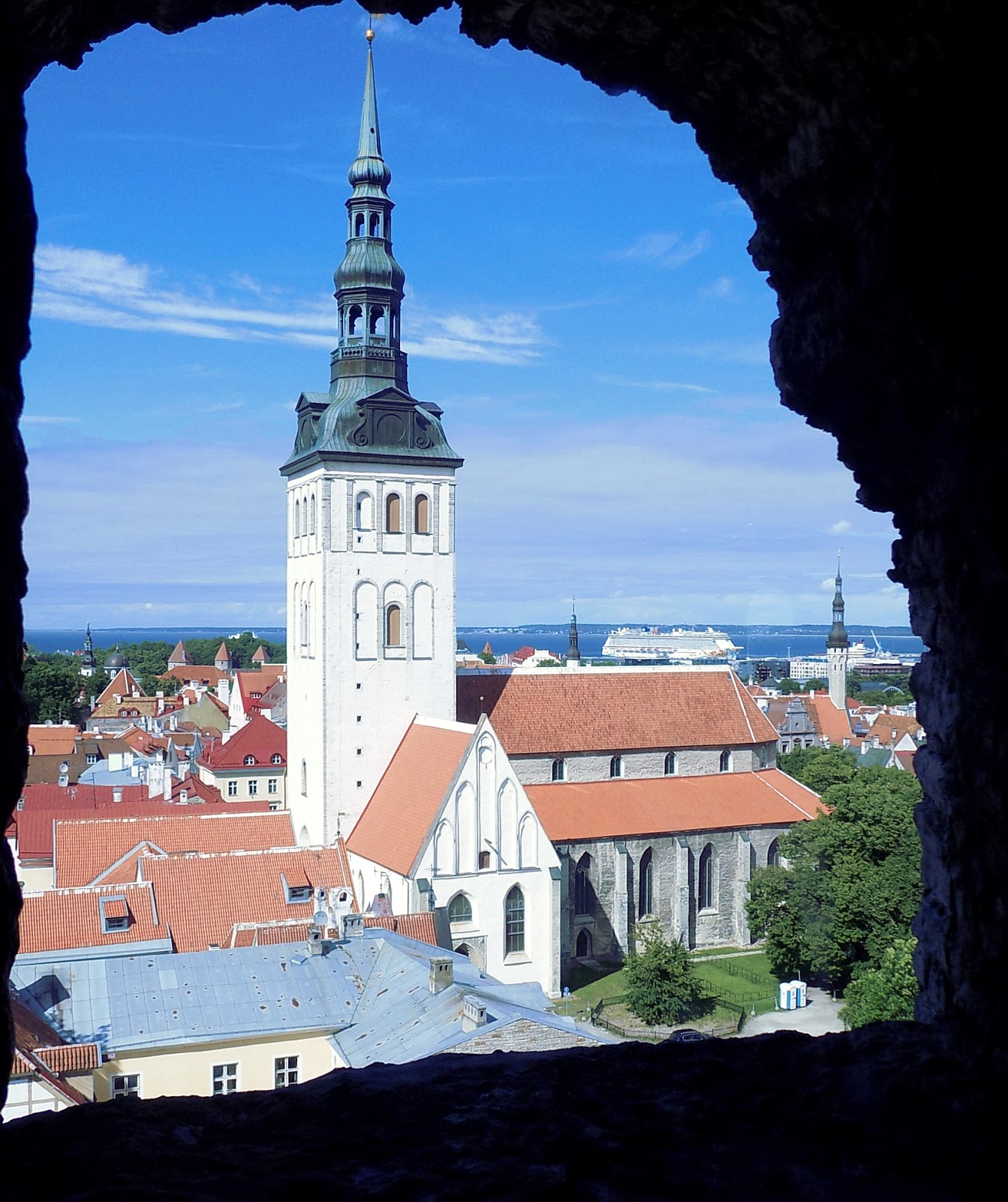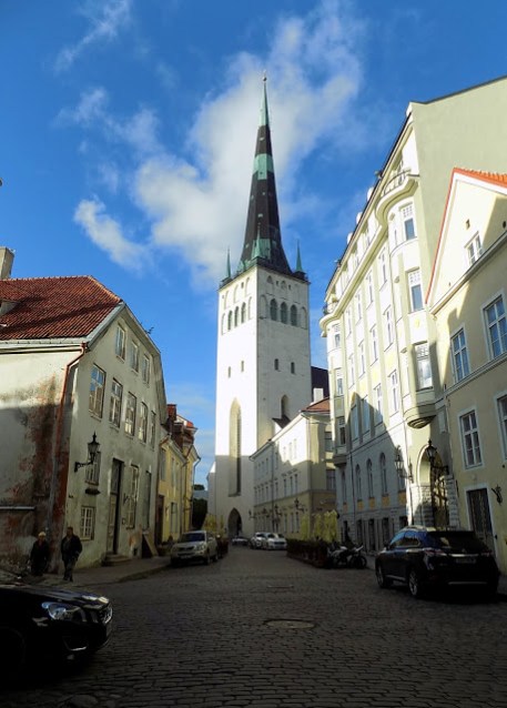 A Toompea egy kilátópontjáról az óvárosra láttunk rá bástyáival és a magastornyú Szent Olaf-templommal. Lépcsősoron sétáltunk le az All-linnbe, azaz alsó városba. Helen elmondása alapján az alsó részek az autentikus középkori épületek, amik kőből épültek, a felső város épületeinek nagyrésze csak 100-120 éves.