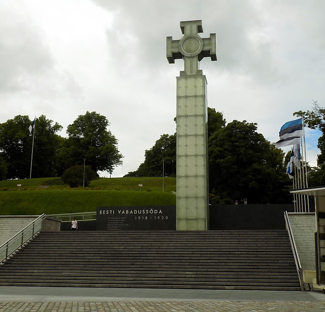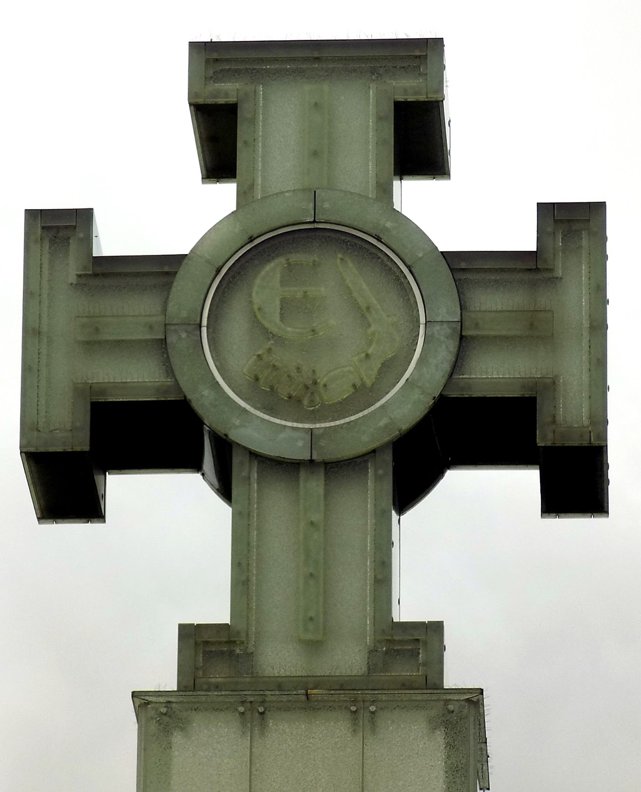Az emlékmű tetején a függetlenségi háborúban kitüntetésként adományozott Szabadság Keresztje (Vabadusrist) látható, ám laikus szemnek ez egy kereszt – Európa legateistább országáról beszélünk -, benne egy eurójel -közelről látszik, hogy nem az, messziről nem -, és egy fura ábra, ami egyébként egy kardot tartó kar.