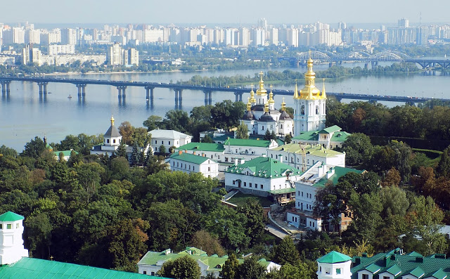 | Az Alsó Lavra és a túlparti panelsivatag |