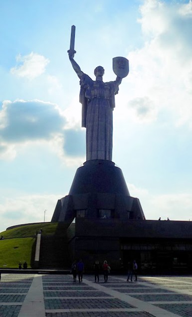Következő úticélunk a Rodina Maty (Motherland monument, magyarul Anyaföld szoborként említik) volt, pár perces sétával jutottunk el ide. Ez az egyik legkomcsibb dolog, amit valaha láttam. Óriási, fém női alak, egyik kezében pajzs, a másikban kard. 1981-ben épült, a II. világháborúban elesett katonák emlékére. A pajzson a Szovjetunió címere díszeleg. Maga a szobor magasabb, mint a New York-i Szabadságszobor. Mivel jelenleg is folyik a dekommunizáció, a szobor létjogosultsága is vitatott, de lévén II. világháborús emlékmű, kiesik a törvényi szabályozás hatásköre alól. (2015-ben fogadta el az ukrán parlament, hogy a szovjet és kommunista utcaneveket, szimbólumokat, szobrokat el kell tüntetni.)