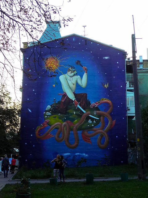 Uzsonna/kései ebéd után sétáltunk egyet a város 19. századi Európát idéző negyedében. A környéken bóklászva izgalmas dolgokba botlottunk, mint a fenti falfestmény. Megtudtuk, hogy ez megfeleltethető a nagymagyar nacionalista ábrázolások ukrán verziójának.