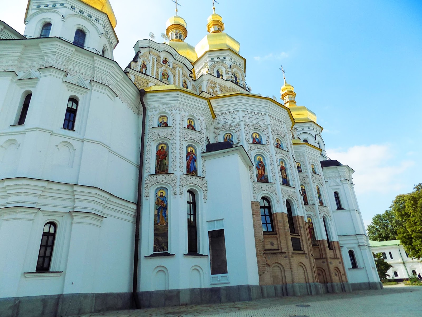 A Nagyboldogasszony székesegyházba letakart hajjal és vállal léphettünk csak be. Végigsétáltunk rajta, tipikus csicsás ortodox templom tömjénillattal, nagy terekkel és aranyozott díszítéssel, a falakon és a plafonon festett képekkel. Az ortodox templomokra is igaz kis túlzással, hogy ha egyet láttál, az összeset láttad. Innen a barlangokhoz próbáltunk lejutni, ahol a lavra szerzeteseinek mumifikálódott testeit őrzik, de ez a hely egy labirintus, és nem igyekeznek útjelző táblákka segíteni az egyszeri turista életét. Nagy nehezen elvergődtünk egy bejárathoz, amiről kiderült, hogy a kijárat, és egy pap tessékelt ki minket erélyesen mondván, hogy itt nem lehet bemenni, meg egyébként se mehetnénk be, mert térdig érő rövidnadrág van rajtam, és oda nők csak szoknyában mehetnek be. Pfff. Én igyekszem tiszteletben tartani minden vallás bullshit szabályait, de abból elegem van, hogy az senkit nem zavart, hogy fox szintén rövidnadrágban volt, de én takarjam el a hajam, a vállam, a bokám, és még csak nem is jó a nadrág, vegyek fel szoknyát. Ha nagyon akartuk volna, tudtunk volna szoknyát hajtogatni sálból, de úgy voltunk vele, hogy ez egyszerűen nem ér ennyit. Ha küzdesz a nők hatrányos helyzetű megkülönböztetése ellen, akkor van egy pont, ahol már nem tudod figyelembe venni a vallási “indokokat”. Itt döntöttem el, hogy köszönöm szépen, láttam elég ortodox templomot életemben, kipipálhatom a moszkvai Megváltó Krisztus-székesegyházat is, én többet nem teszem be a lábam olyan ortodox templomba, ahol ennyire szigorúan veszik a dress kódot.