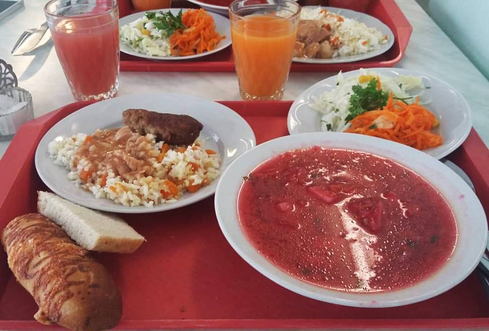 Még ki se hevertük a nagy élményt, már a dolgozói kantinban találtuk magunkat, előttünk egy tál borscs és rizses hús salátával. Igen, a zónán belül dolgoznak a mai napig, és a munkások Csernobil településen laknak ilyenkor. Két hetet töltenek a zónán belül, két hetet kívül. Aznap mi is ugyanazt ettük, mint amit ők ebédeltek. A leves finom volt, de a főétel tipikus undorító mócsingos menzai hús, csak a rizst és a salátát csipegettem.