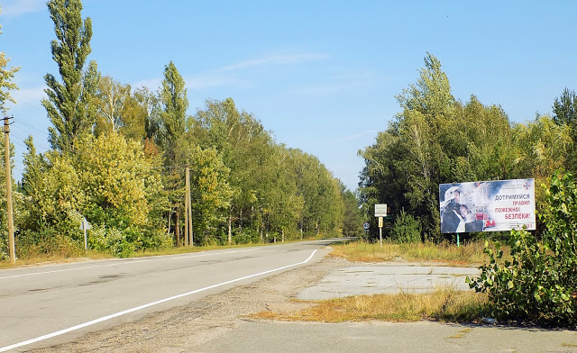A 30 km-es zóna átnyúlik Fehéroroszországba is, és csak engedéllyel lehet belépeni 18 éven felüli személyek számára. Ellenőrizték az útleveleket, és tartottunk egy pisiszünetet (angolwc volt!). Előre szóltak, hogy se a zónaőröket, se az épületeket nem fotózhatjuk az ellenőrzőponton, úgyhogy az első kép, amit lőttem, viszonylag jellegtelen.