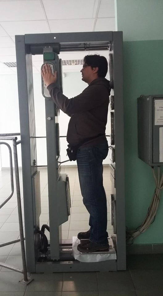 Mielőtt leültünk volna enni, át kellett mennünk egy ellenőrzésen, hogy biztosan nincs rajtunk radioaktív részecske. Mindenki sikerrel vette az akadályt.