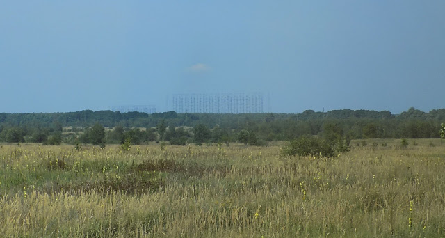 Ezután a szupertitkos radarállomást vettük célba. Ezzel kapcsolatban mesélt a guide-unk egy nagyon “cukit”; a radarállomás fedősztorija egy gyerektábor volt. Annyira szerencsés a környék földrajzi helyezkedése, hogy találtak egy pontot, ahonnan nem látszottak a bazinagy rakétafelderítő rádióállomások, amik egyébként 150 és 90 m magasak. Egyedül Pripjáty emeletes házainak a tetejéről látszottak, de Pripjáty volt a szocializmus mintavárosa, és a helyiek nem beszéltek a fura építményről. A főútról lekanyarodik egy út, ami a szupertitkos katonai építményhez vezet, ide építettek egy buszmegállót, macis falfestéssel, hogy tökéletes legyen a fedőtörténet. Ha valaki mégis rátévedt volna a “gyerektábor” felé vezető útra, két katona állította meg hamarosan a táborba való belépésre feljogosító engedélyeket kérve. Ha az ember nagyon akadékoskodott, tovább engedték, de a következő katonapáros, aki megállította a kíváncsiskodót, már le is lőhette az embert. Nem volt hát érdemes kíváncsinak lenni.