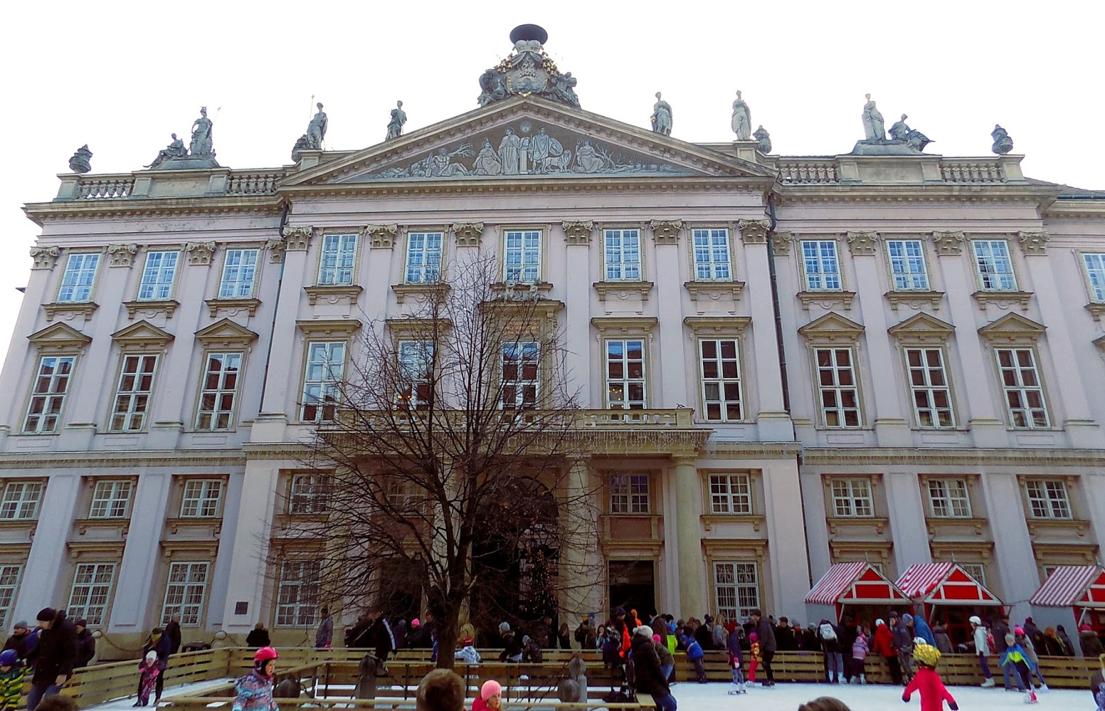 A Prímási palota előtt kis korcsolyapálya áll, nagy volt a nyüzsgés rajta.