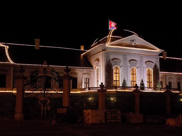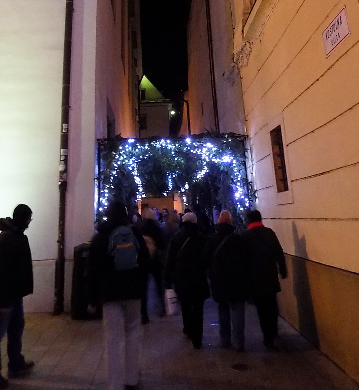 Ugyanazon a kiskapun haladtunk át, most fénysorok égtek rajta. Mennyire egyszerű megoldás, mégis mennyire hangulatos!