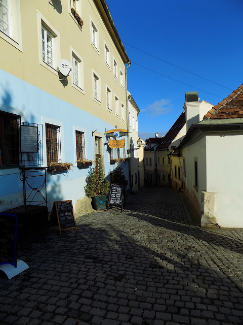 Egy kicsi, fenyőágakkal díszített átjárón keresztül jutottunk a Főtérre (Hlavné námestie), ahol kis bódékból szállt a sült hús és a forralt bor illata. Nem is bírtunk ellenállni, az egyik árus biztatására megkóstoltuk a „fekete borként” árult forralt bort. Erős, de kellemes ribizliízű italt kaptunk, kényelmesen elkortyolgattuk, mielőtt nekivágtunk volna a várhegy megmászásának.