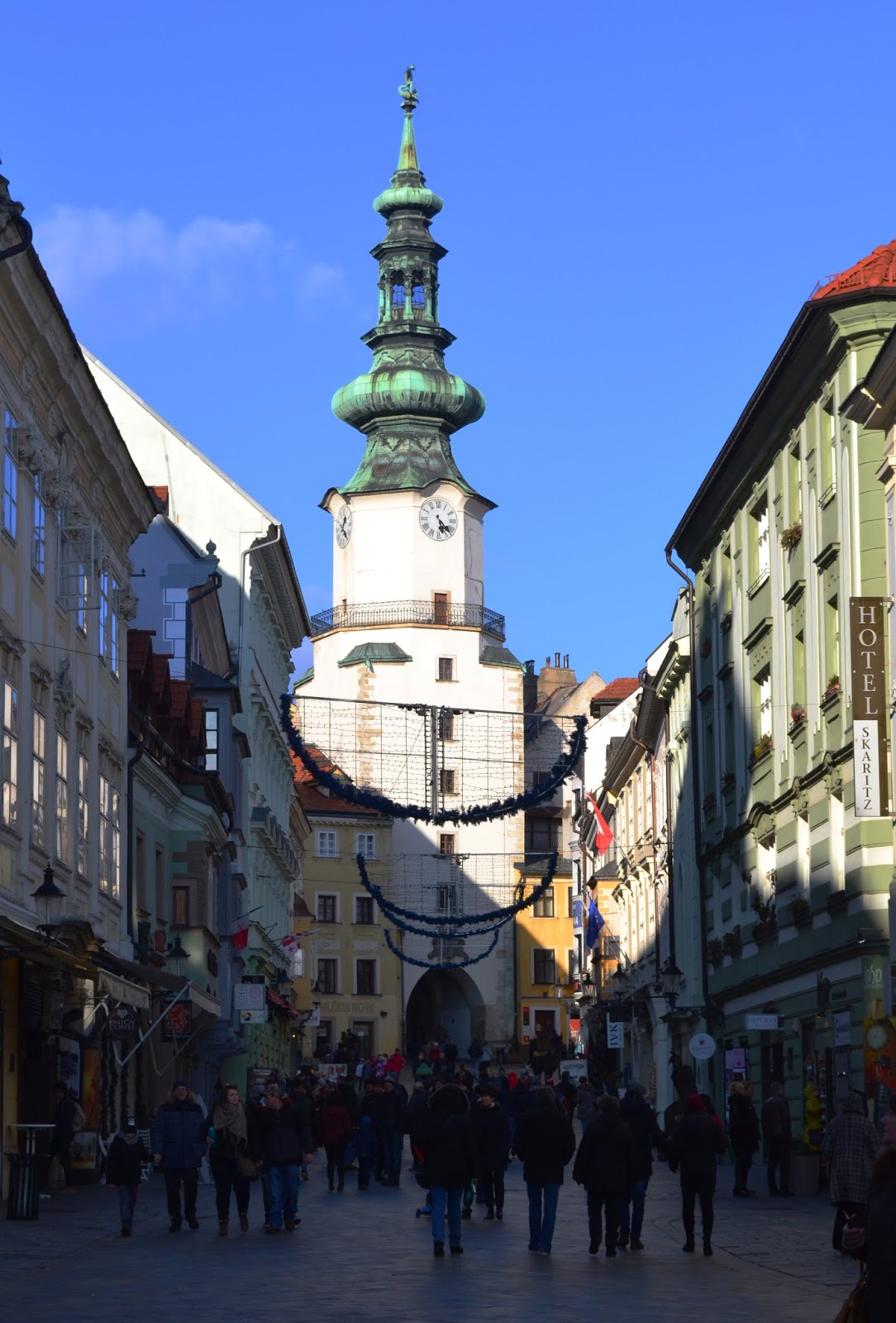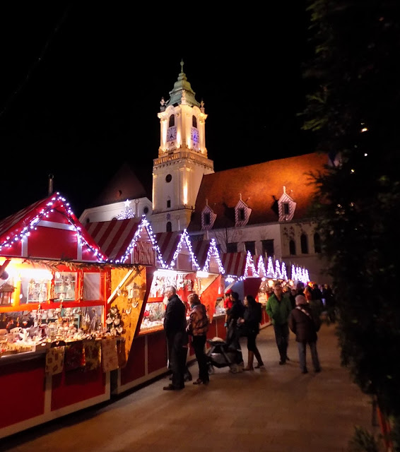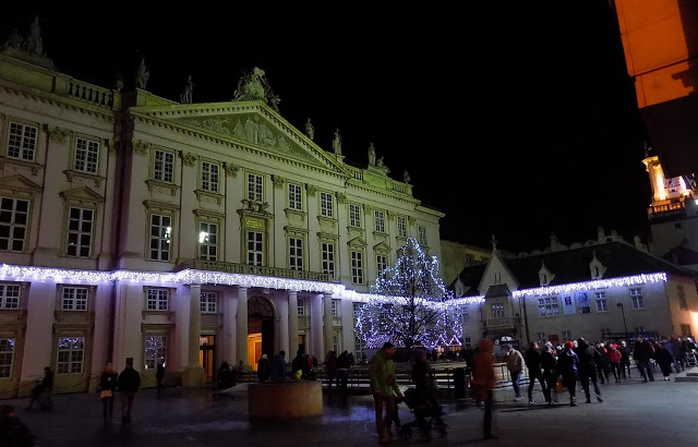 Pozsony egy kifejezetten jó élmény volt. A karácsonyi vásár barátságos, ízléses, nem érte el az a téboly, ami Budapestet és Bécset jellemzi mostanság. Sokan voltak, főleg este, de még kezelhető volt a tömeg. A dekoráció, a bódék kinézete egységes, nem kelt olcsó hatást. Az árak a budapestiéhez hasonlóak, de legalább nem gagyit kap az ember a pénzéért cserébe. Sokszor hallottunk magyar szót – de mindig csak turistáktól. Arra számítottam, hogy szolgáltatói részről is tudunk majd magyarul beszélni, de mindenki angolul szólt hozzánk, még ha hallották is, hogy magyarul beszélünk. Fura, mert Bécsben még a Sacher cukrászda pincére is magyarul beszélt velünk, pedig ott nem számítottam rá, itt valamiért azt hittem, általánosabb. Egyébként a város is teljesen levedlette minden nyomát annak, hogy ez egy magyar koronázóváros – megörültünk, ha magyar utcatáblát vagy emlékművet találtunk, mert meglepően kevés volt belőlük. Az óváros egyébként Győrre vagy Székesfehérvárra emlékeztetett minket.