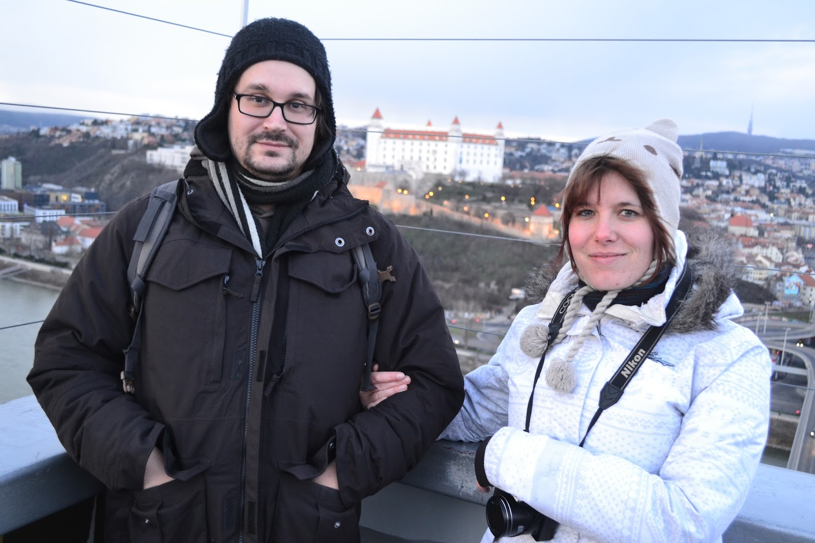 Ebéd után kettévált a csapat: Dave és fox társaságában elindultam meghódítani az UFO-t, két húg, sógor és jóanyám a karácsonyi vásárban töltöttek időt. A Novy most hidat 1972-ben adták át. Az építést nagy felháborodás övezte, és a mai napig vérlázító, hogy az építkezés miatt az óváros egy részét ledózerolták: lerombolták a zsidó negyedet, a zsinagógát, az Óváros teret, a Halászcsárdát. Csodálkoztam is, milyen hirtelen ér véget az óváros, és mennyire keresztbevágja ez a híd. 😦
