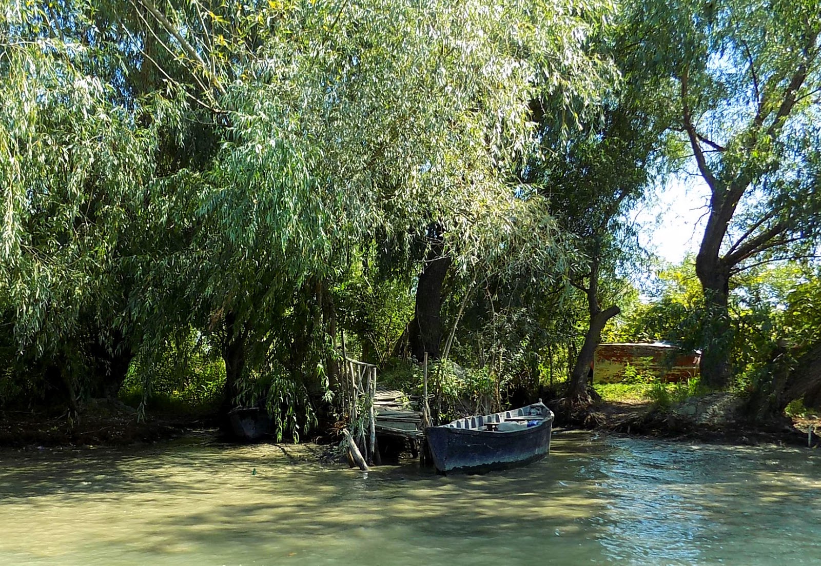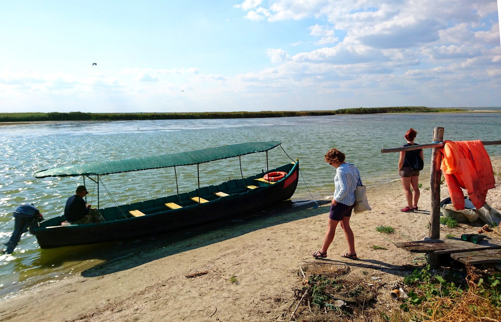 Lepakoltunk, kerestünk egy boltot, majd a rakománnyal visszatértünk a szállásra, és megebédeltünk. Közben befutott a hajós emberünk, aki a délutánra kért hajótúránk helyszínére kísért minket. Biciklivel jött, amit az ukrán zászló színeire festett – igen erős kifejezése a nemzeti érzületnek, főleg azon a vidéken.