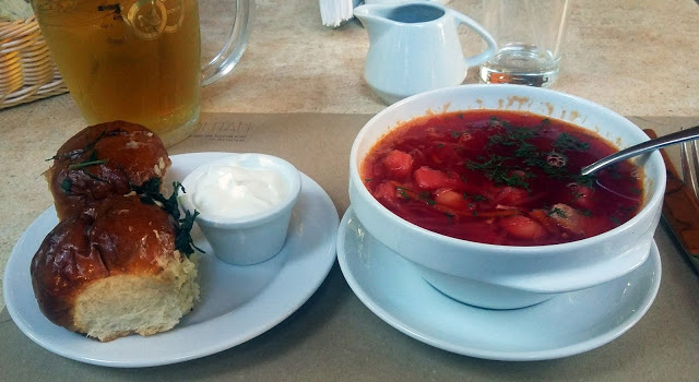 Az utolsó kijevi napunkon nem nagyon akaródzott kidugni az orrunkat a szobából. Akartunk még várost nézni, de az előző napi utazástól még fáradtak voltunk, délig aludtunk. A hotel „éttermében” terveztünk ebédelni, de nagyon rossz ötlet volt. Kétféle menü volt összesen, és a pincérnek sikerült juszt is a másikat kihoznia. Kicserélték ugyan, de nem lettünk boldogabbak: az ehetetlen kategóriába volt sorolható, a legrosszabb menzás ebédek színvonalán. Mivel nem sok gusztusunk volt megenni, elindultunk inkább az Aranykapuhoz, a szökőkutas étterembe. Ott jól teletömtük magunkat borsccsal és lavassal.