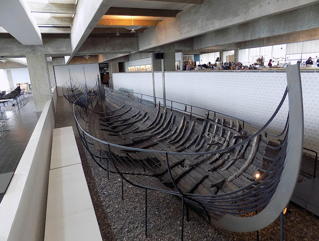 Vasat: polietilén-glikolba áztatták, amíg teljesen átvette a víz helyét a fában, konzerválva a hajókat. A múzeum csarnokában mind az öt hajó megtekinthető a fennmaradt darabkákból újjáépítve. A hajók funkciójukat tekintve meglepően változatosak: egy óceánjáró (nem a mai értelemben), egy hadihajó, egy kereskedőhajó, egy hosszú hadihajó a dán vizekre tervezve, és egy halászhajó. Nem tudom, sejthették-e a vikingek, hogy egyszer megtalálják az elsüllyesztett hajókat, de ha időkapszulát akartak volna hagyni, akkor se tudtak volna nagyobb választékkal előállni.