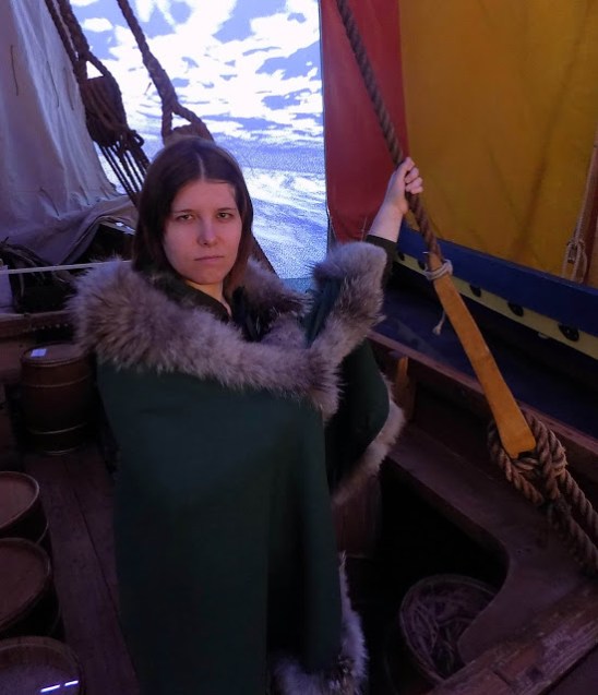 Nem csak a hajók történetét mutatta be a kiállítás, hanem a korabeli viking életet, a viking történelmet is. Egy teremben pedig jelmezeket ölthetnek magukra a látogatók, és beöltözhetnek vérszomjas vikingnek, majd a hajódíszleteken pózolhatnak. Nem hagyhattam ki ezt a lehetőséget én sem.