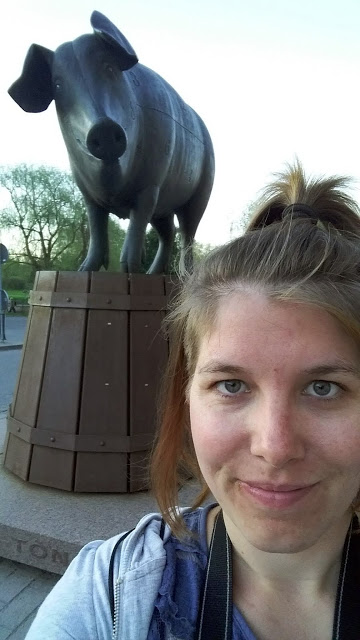 Az Emajõgi partján sétáltunk. Megtaláltuk a disznó szobrát, amit már tavaly is meg akartam nézni.