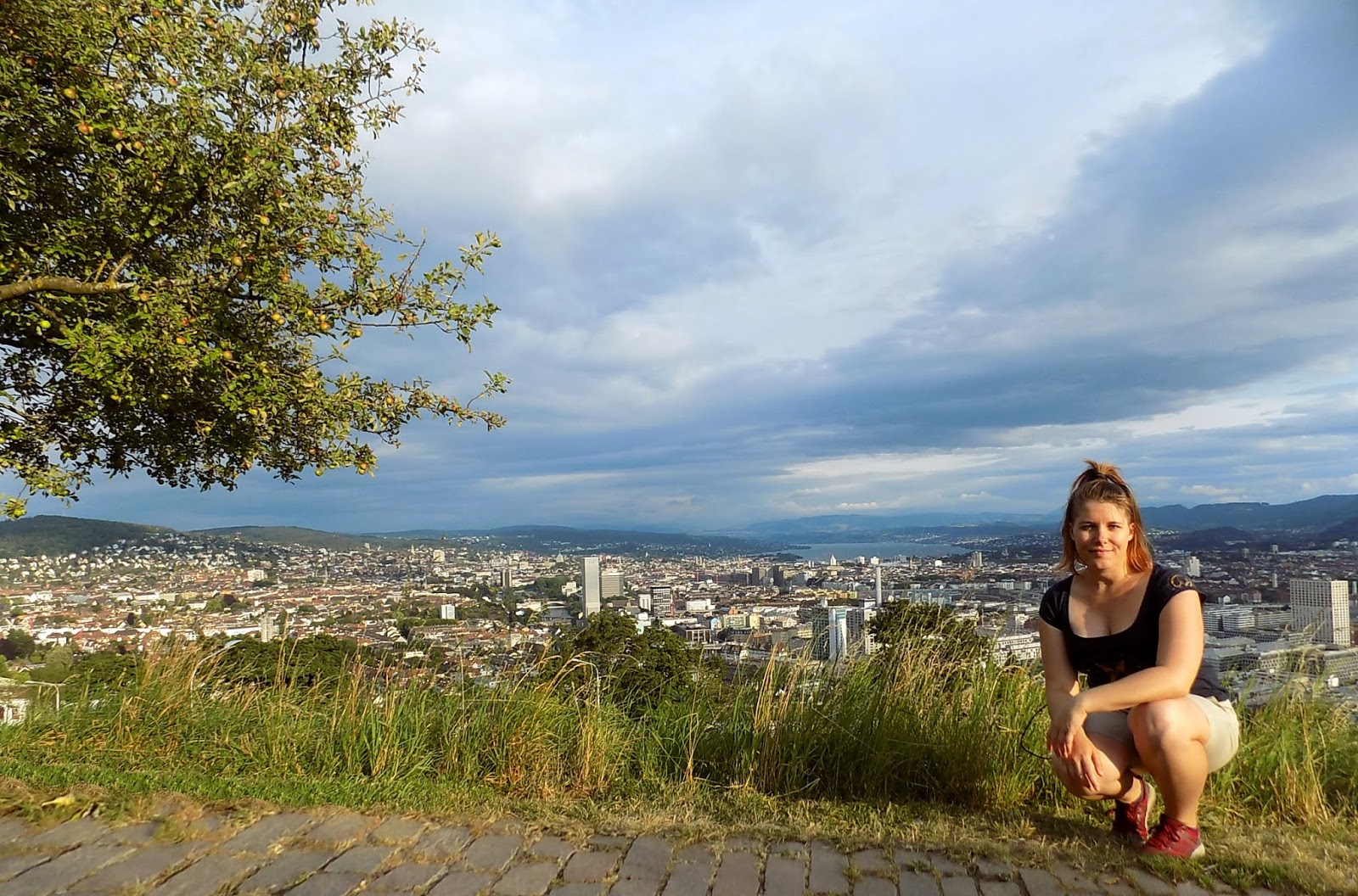 Itt vagyunk már napok óta, de még nem láttam, hogy is néz ki távolról ez a Zürich, mekkora a tó a magasból, és már nagyon idegesített. Mintha be lennék zárva a városba, úgy éreztem magam. Kollégáim ma nem akartak menni sehova, fáradtak voltak. Én nem tudtam volna az apartmanban ülni, úgyhogy elhatároztam, hogy márpedig én felmegyek valahova magasra, mert látnom kell a várost. A közeli Käferbergre esett a választásom, aminek a teteje a google maps szerint a szállástól csak 3,5 km.